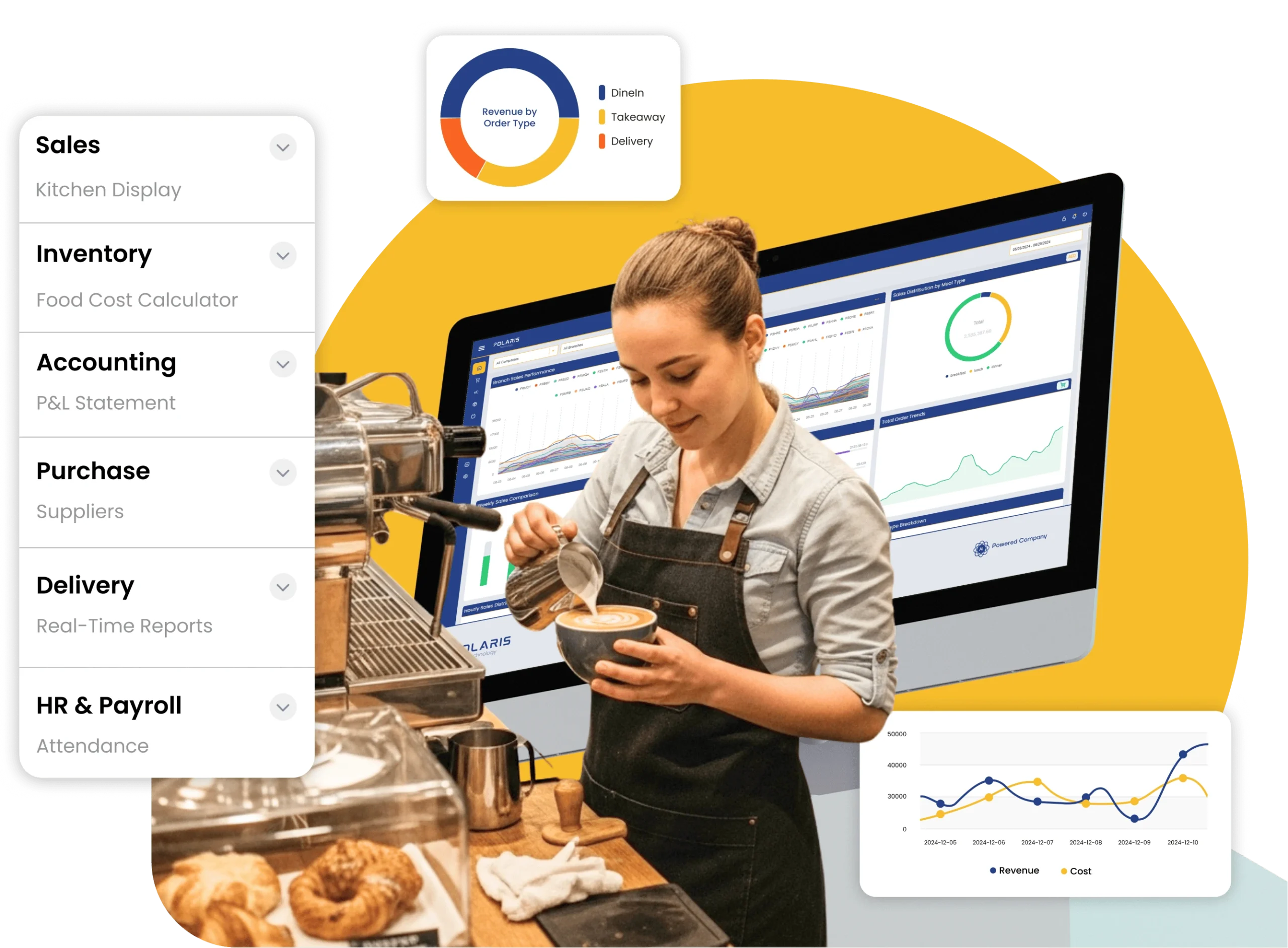 من المطاعم الفاخرة إلى مطاعم الوجبات السريعة والمقاهي وعربات الطعام والصالات والمخابز والحلويات أو المطابخ السحابية، Polaris ERP هو نظام تخطيط موارد المؤسسات الوحيد للمطاعم في الإمارات العربية المتحدة، والذي يغطي عمليات المطاعم من البداية إلى النهاية.