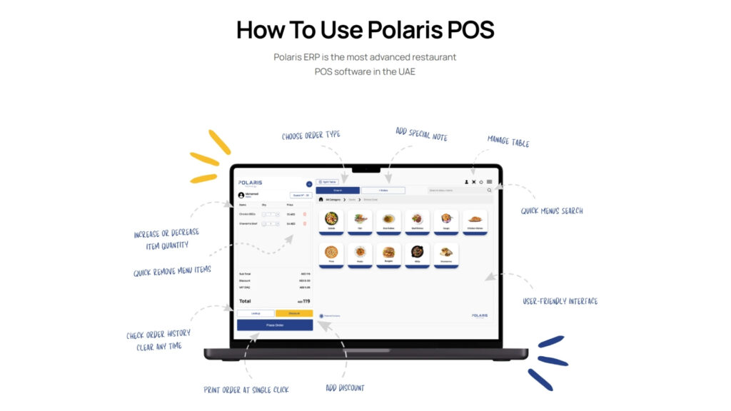 Polaris ERP هو برنامج متكامل لإدارة المطاعم ونظام تخطيط موارد المؤسسات (ERP) قائم على السحابة ومقره الإمارات العربية المتحدة، يساعد شركات الأغذية والمشروبات على العمل بسلاسة. يجمع البرنامج جميع العمليات في نظام واحد، بما في ذلك نقاط البيع وإدارة الوصفات وتكاليف المواد الغذائية والمحاسبة والمشتريات وتتبع المخزون وتكامل التسليم والموارد البشرية والرواتب، ويغطي العمليات من البداية إلى النهاية من الواجهة الأمامية إلى الخلفية.