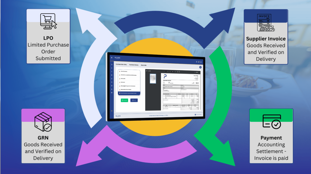 قبل الحديث عن الفوائد، من المهم فهم كيفية سير عمليات الشراء في المطاعم عادةً داخل نظام مثل Polaris ERP.